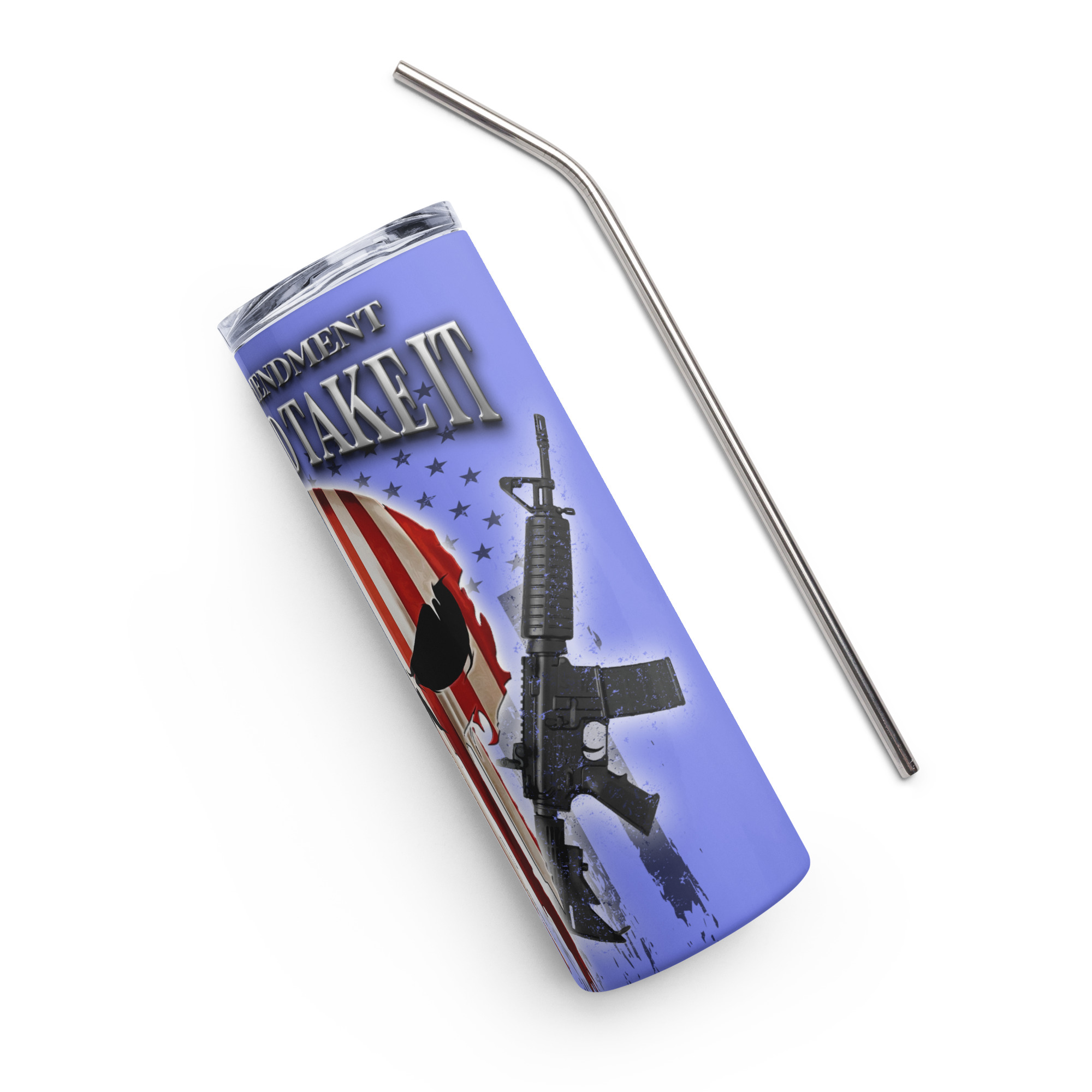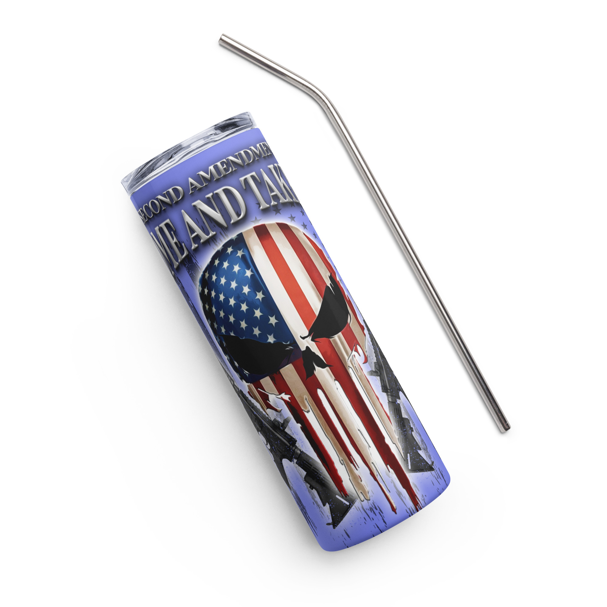 Come and take it 20-oz Stainless Steel Tumbler. Come and Take it Punisher tumbler tribute to our Second Amendment. Sure, Come and Take it! Enjoy hot or cold drinks on the go with this stylish stainless steel tumbler! This reusable tumbler with a metal straw is a perfect combo for hot or cold drinks at any time of the day.