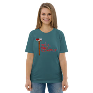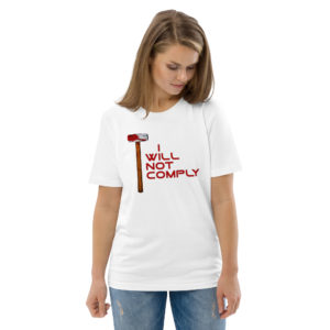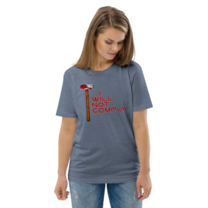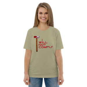 I will not comply Made from 100% organic ring-spun cotton, this unisex t-shirt is a total must-have. It’s high-quality, super comfy, and best of all—eco-friendly.