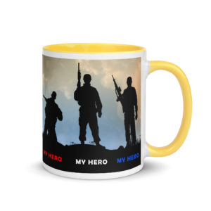 MY HERO Mug 11-oz (pick inside color). Air Force, Army, Navy, Marines, National Guard…America’s Hero… MY HEROS! We dedicate this mug to all of the Military Hero’s, those with us today and those whom have passed. We cannot THANK YOU enough for your service. Thank you Heros!