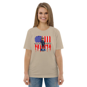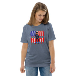 The t-shirt is designed in a unisex style and is comfortable to wear thanks to the 100% organic ring-spun cotton fabric used in its construction. This makes it perfect for wearing all year round and for expressing your support for the president in a stylish and eco-friendly way.